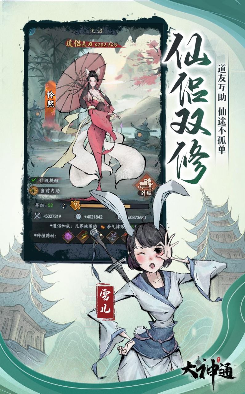 《大神通》是一款以唯美国风仙侠为背景的冒险游戏,将挂机放置与深度探索完美融合。玩家将化身修真高手,在充满东方神韵的水墨世界中开启一段沉浸式修仙之旅。游戏不仅还原了传统修真体系的精髓,更通过独创的战斗模式和丰富的玩法设计,带来前所未有的仙侠体验。从角色培养到门派争锋,从秘境探索到法宝收集,每个环节都充满惊喜,等待玩家发掘这片瑰丽仙界的无限可能。
