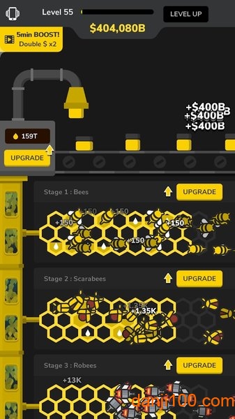 1.游戏完美还原了蜜蜂采蜜的真实过程,工蜂外出采集花蜜后返回蜂巢,通过自动化生产线装罐销售。虽然本质上是一款点击放置类游戏,策略深度有限,但轻松休闲的玩法反而成为其最大特色。