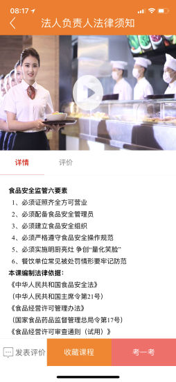 1.视频学习。食安快线提供与官网同步的高质量视频课程资源,注册用户可免费学习各类食品安全专业课程。课程内容涵盖法律法规、操作规范、卫生标准等多个方面,由行业专家精心录制,确保教学内容的权威性和实用性。