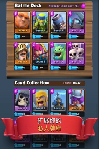 2、策略卡牌战斗,点动你的让战争延续!游戏采用即时策略对战模式,需要玩家在战斗中灵活调整战术,合理分配圣水消耗。每场对战都是对玩家策略思维和临场反应的考验,你需要根据对手的卡组和出牌习惯及时调整自己的战术。