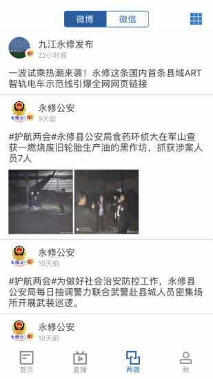 "云聚永修"客户端开设了要闻、民生、大美永修等栏目,并深度融合了九江永修发布、永修、永修交警、永修红绿灯等微博微信新媒体,通过文字、图片、视频的形式,个性化、精准化地提供永修本地资讯及生活服务等。