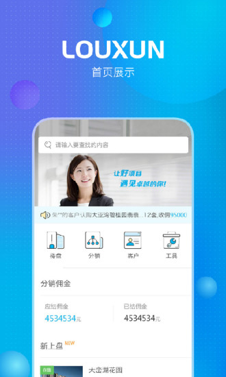 楼讯经纪是一款专为房地产经纪人打造的智能服务平台,致力于帮助从业者高效开展业务。平台整合了新房分销、客户拓展、渠道合作等核心功能,通过移动端实现便捷操作,让经纪人能够随时随地处理业务、查看楼盘信息并快速完成佣金结算。无论是寻找优质房源还是拓展客户资源,楼讯经纪都能提供专业支持,助力经纪人提升业绩。其简洁的界面设计和流畅的操作体验,让房产交易变得更加轻松高效。