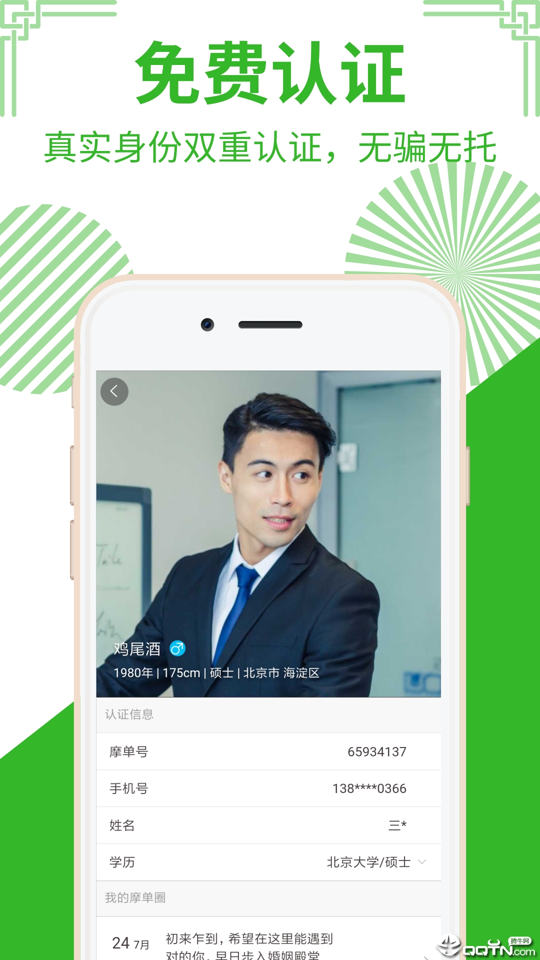 1、免费认证:平台采用创新的大数据认证技术,用户无需上传身份证照片即可完成身份验证,同时提供免费的学历认证服务,确保交友环境的真实可靠。我们承诺平台绝无骗子和婚托,让您能够放心地与志同道合的单身人士交流。