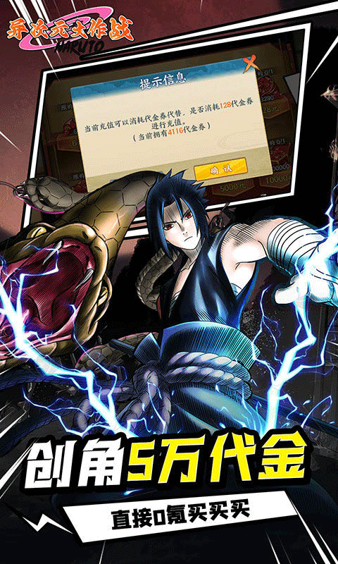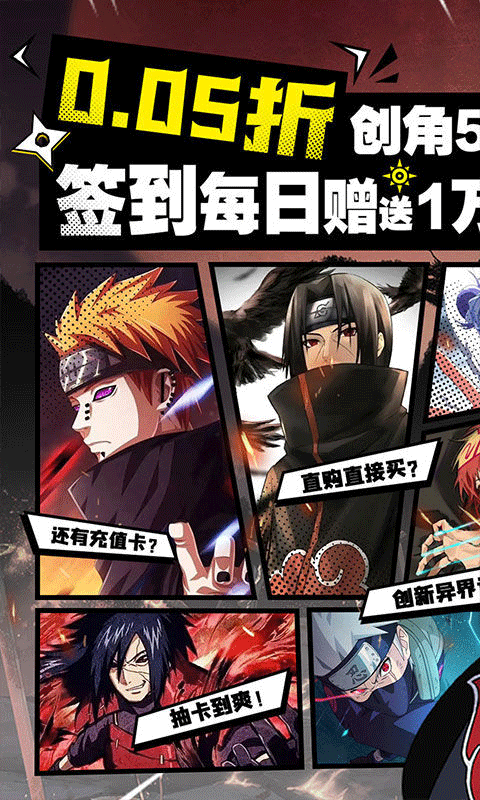 2、上线赠送5万代金券,神话忍者自选*6,帮助新手玩家快速组建强力阵容;
