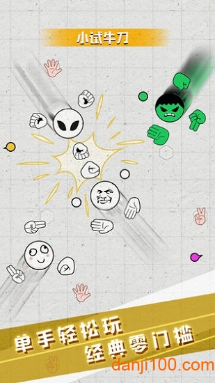 这款游戏通过创新的方式重新演绎了经典猜拳玩法。玩家通过滑动屏幕控制角色移动,在旋转的场景中收集道具。游戏核心机制是利用剪刀石头布的相克关系,当你的道具克制对手外围防御时,就能击破防御直取本体。这种独特的攻防设计让简单的猜拳变得策略性十足。游戏节奏明快,画面清新,音效活泼,整体体验轻松有趣。无论是想寻找休闲娱乐,还是体验竞技快感,这款游戏都能带来满意的游戏体验。
