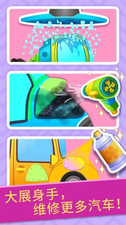 1、【彻底清洁】从冲洗车身的顽固污泥到清理空调滤网的积尘,再到用专业工具擦亮每一扇车窗,游戏提供全套清洁工具,让孩子们体验从里到外的深度清洁过程,看着脏兮兮的汽车在自己的努力下焕然一新,成就感满满!