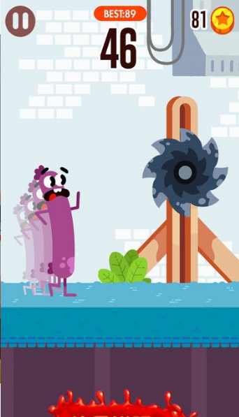 2、精彩刺激的游戏动作:玩家可以通过触摸屏幕控制香肠进行跳跃和滚动,躲避障碍物和怪物的同时,还可以收集道具和金币,获取额外的分数和特殊能力。游戏操作简单易上手,但想要精通需要掌握精准的时机判断。随着游戏进程,还能解锁二段跳、滑翔等高级动作,让跑酷体验更加丰富多彩。