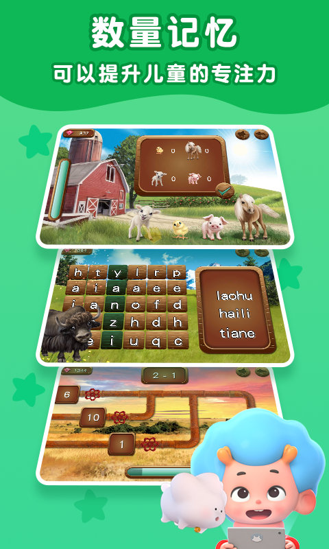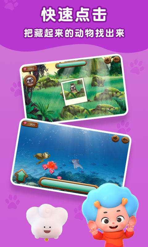 -6大地图场景,20多种互动游戏,让孩子在探索中学习成长。每个场景都经过精心设计,色彩鲜艳,充满童趣。