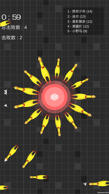 3、不要靠近比你体形更大的玩家,他们会吞噬你的玩具,甚至导致你的失败;游戏采用弱肉强食的生存法则,小飞刀要尽量避开大飞刀,同时寻找机会吞噬更小的飞刀来壮大自己。