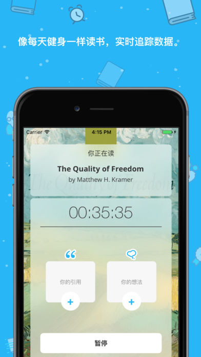 实时追踪你的阅读,开始每日阅读进度:内置计时器可以精确记录每次阅读的起止时间,生成详细的阅读日志。每日进度条让你随时掌握目标完成情况。