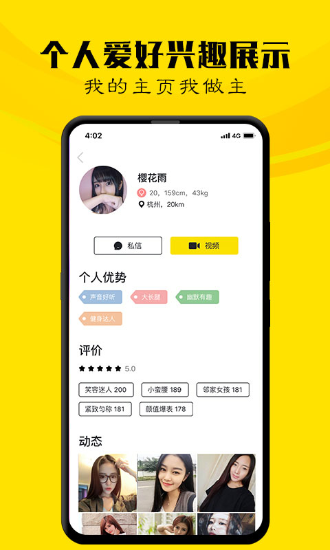 附近晒生人快速聊天功能让你轻松结识周边好友,打破社交壁垒;一风打尽单身专区为单身人士提供专属交友空间;反圈话题互动分享让你参与热门讨论,表达独特见解;捕获有趣的灵魂功能通过智能算法为你匹配志趣相投的朋友;个人爱好兴趣展示区让你充分展现自我魅力;我的主页我做主提供个性化主页定制服务;最适合你的美颜相机让你时刻保持最佳状态;一直美美哒功能提供24小时在线美颜建议,让你随时随地展现自信风采。