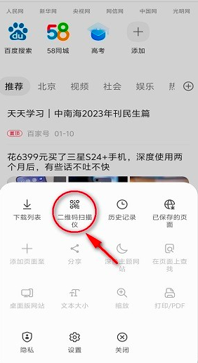 6、返回主页后再次打开菜单,新增的扫描仪图标会高亮显示,点击即可启动AR增强现实扫码功能。
