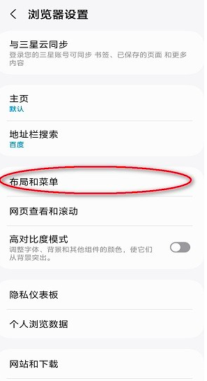 3、在浏览器设置界面中找到"布局和菜单"分类,这里可以全面自定义界面元素布局。