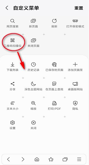 5、在组件列表中找到"二维码扫描仪",长按后拖动到下方常用功能区,支持调整排列顺序。