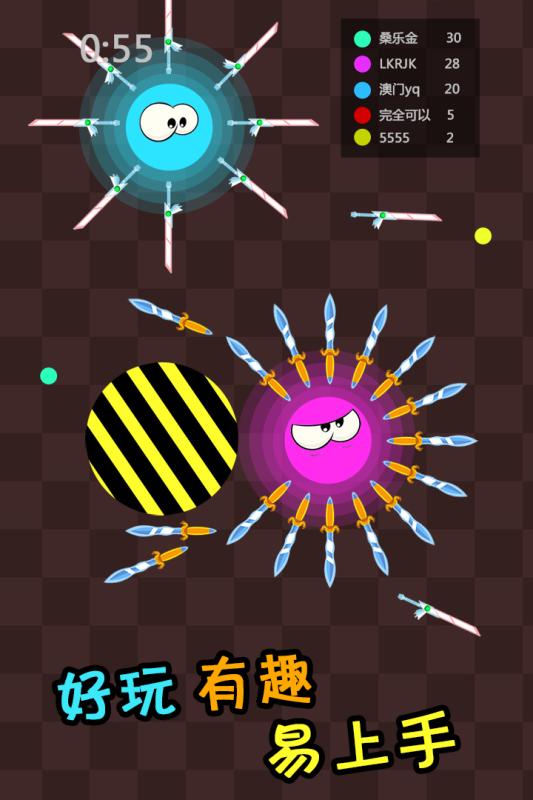 《刀剑英雄大作战》是一款充满刺激与策略的IO类飞刀竞技手游,将传统武侠元素与现代竞技玩法完美结合。在游戏中,玩家将化身为一名飞刀高手,通过灵活走位和精准操作,在地图上收集散落的刀剑来强化自身实力。每把飞刀都代表着一份力量,你需要不断壮大自己,同时躲避强敌的追击,伺机击败弱小对手。游戏提供多种竞技模式与丰富关卡设计,无论是单人挑战还是多人混战,都能带来截然不同的战斗体验。独特的防御反击机制和加速系统,让每一场对决都充满变数,只有真正的飞刀大师才能笑到最后!