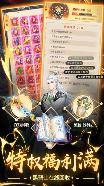 游戏采用动态成长系统,随着等级提升将解锁更多强力被动技能。神兵进阶系统是核心玩法之一,通过消耗进阶丹可显著提升角色属性。每阶神兵都有独特外观特效,高阶神兵会绽放炫目光效。系统还包含神兵共鸣机制,多件高阶神兵可激活额外属性加成。
