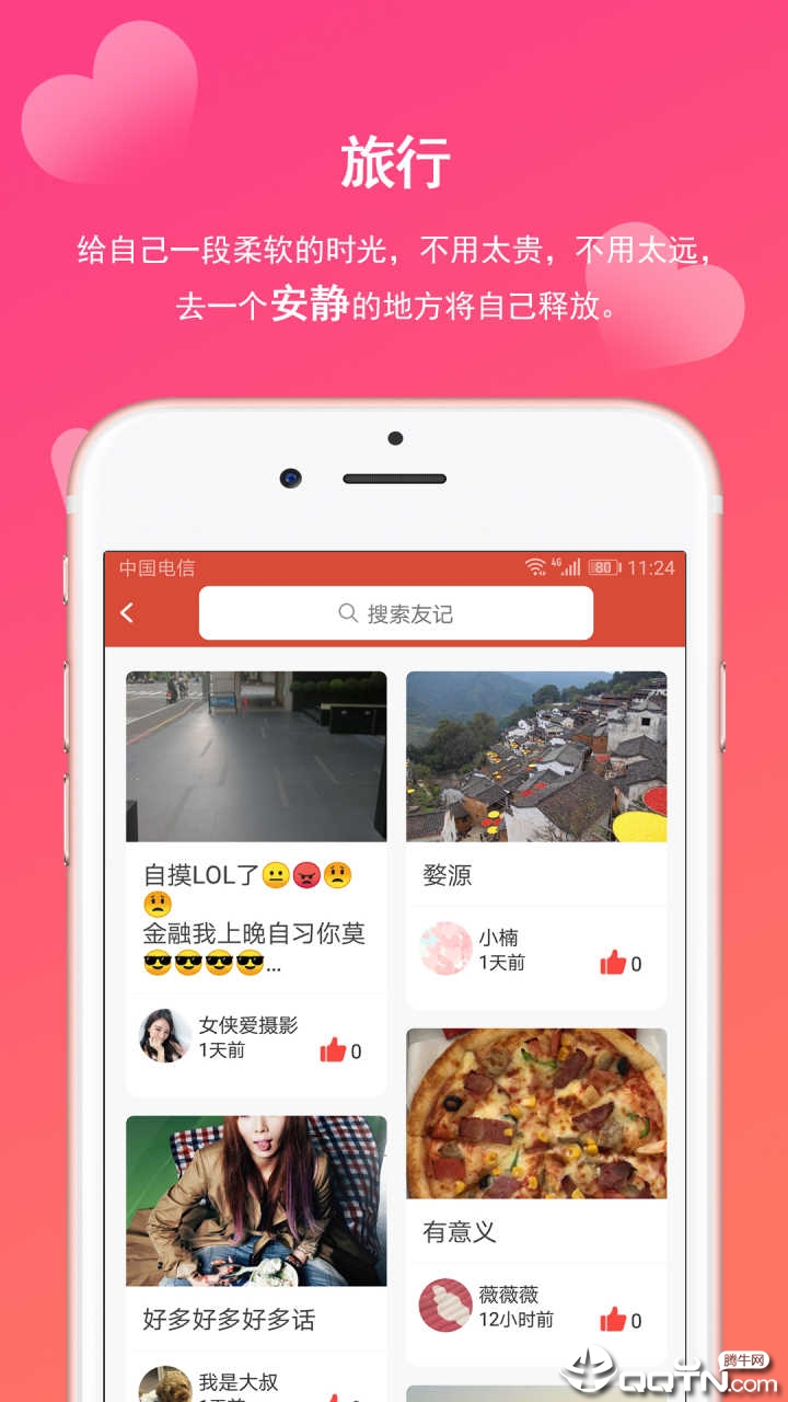 给自己一段柔软的时光,不用太贵,不用太远去一个安静的地方将自己释放。平台整合了丰富的旅行资源和用户分享,帮助你规划完美的短途旅行,结识同行的旅伴,记录旅途中的美好时光。