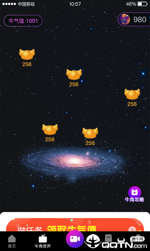 1.牛角世界全新页面改版升级,增加3D动态效果和个性化主题设置功能,优化积分获取路径展示