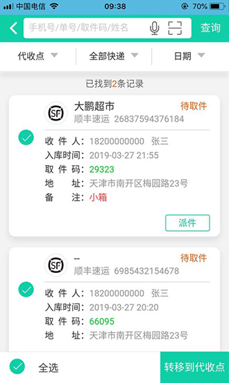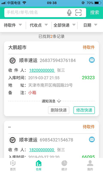 3、派件通知列表:可视化通知管理界面,实时显示每条短信的送达状态,让快递员清晰掌握客户接收情况。