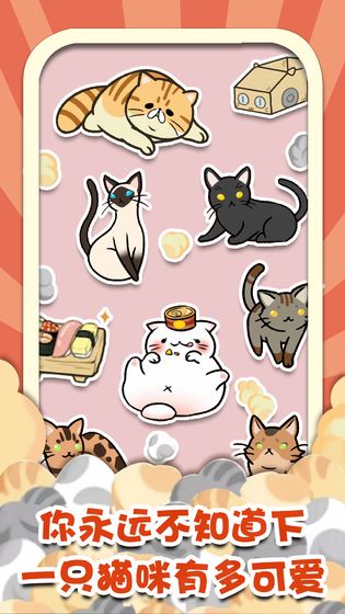 3、采用极简操作设计的治愈系玩法,让玩家在轻松愉快的氛围中释放压力。游戏中的每一只猫咪都经过精心设计,呆萌的表情和可爱的动作能够瞬间融化你的心,这也是吸引大量玩家持续体验的重要原因。
