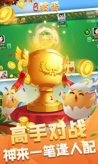 大眼揭蛋游戏免费游戏icon更新升级,品牌logo大眼游戏"、音效升级;全新设计的游戏图标和logo更具辨识度,精心制作的音效让游戏氛围更加生动。游戏内还加入了多种特效,让出牌、胜利等时刻更具视觉冲击力。