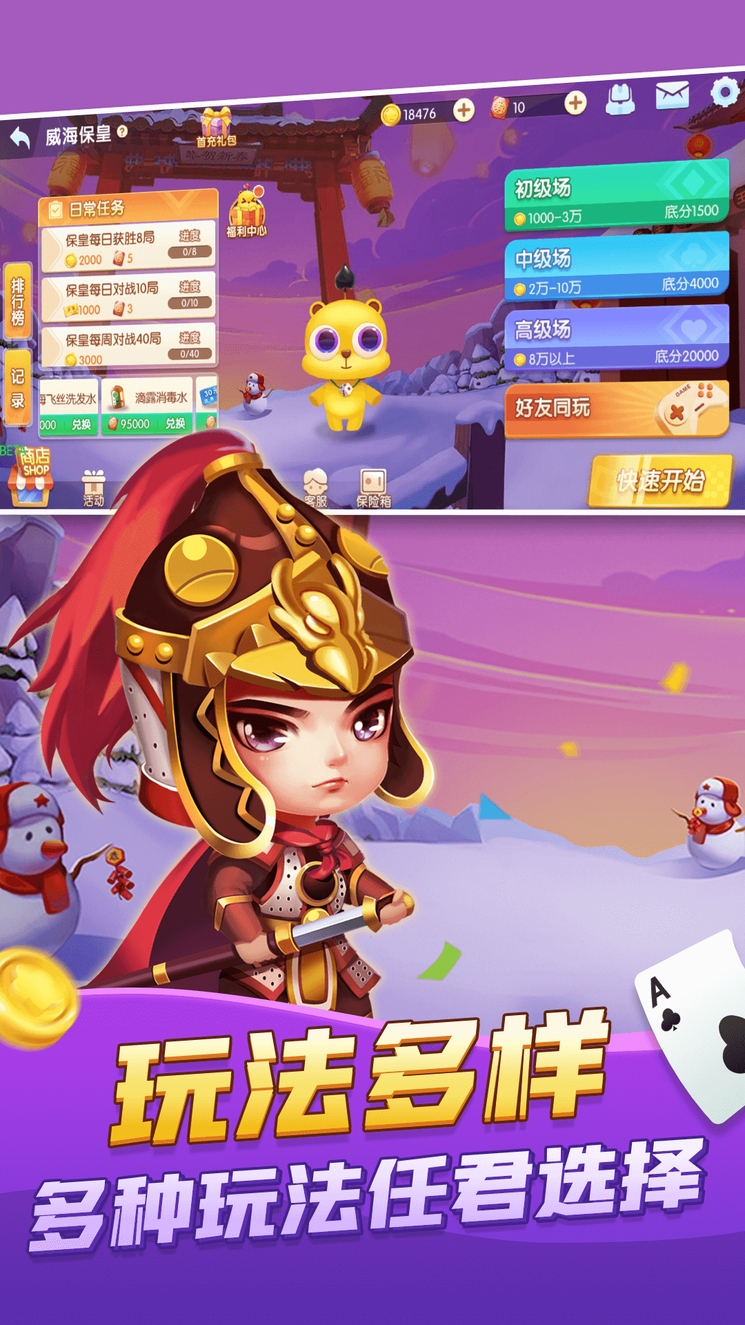 游戏完整保留了山东各地最具代表性的传统玩法规则,玩家可以自由选择青岛、威海、潍坊等不同地区的特色玩法。每种地域玩法都经过精心还原,从发牌规则到胜负判定都严格遵循当地传统。游戏还提供详细的玩法教学,让新手玩家也能快速掌握不同地区的规则差异。无论是喜欢刺激的青岛玩法,还是偏爱策略性的威海规则,玩家都能在这里找到最适合自己的游戏方式,体验最原汁原味的保皇乐趣。