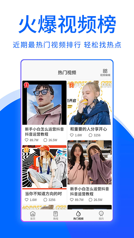 1、本软件结合了从入门到精通的完整教程体系,包括基础操作指南、高级运营策略、平台算法解析等内容。通过拆解当下最成功的网红案例,详细讲解他们的运营思路和实操方法,同时提供每日更新的热门视频素材库,帮助用户获取创作灵感,掌握爆款内容的制作秘诀。