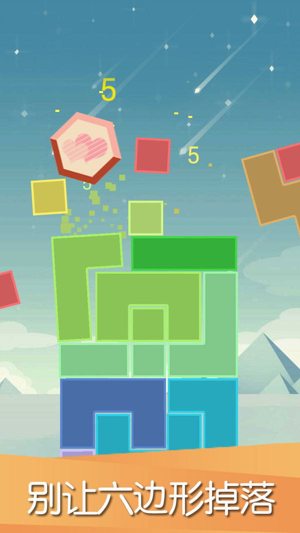 2、物理引擎的真实模拟是游戏的最大亮点。六边形在下落过程中会产生滚动惯性,这种动态变化让每次游戏都充满变数。玩家需要根据六边形的运动状态实时调整策略,这种紧张刺激的体验让人欲罢不能。