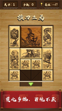 1、经典华容道玩法,再度为你呈现,发挥你的聪明才智,帮助曹操逃脱。游戏完美还原了传统华容道的精髓。