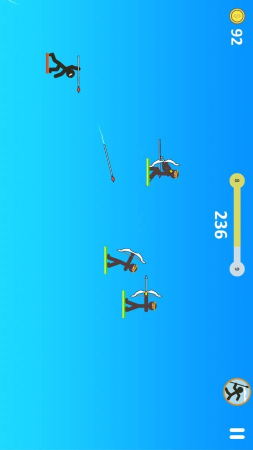 1、极简的操作方式,一根手指就能完成所有动作;2、采用先进的物理引擎,长矛飞行和碰撞效果真实自然;3、关卡中会出现各种特殊敌人,有的会移动闪避,有的会举盾防御;4、夸张搞笑的音效设计,让战斗过程充满欢乐;5、随着关卡推进难度逐步提升,后期关卡极具挑战性;6、完善的成长系统,通过击败敌人获取资源强化角色;7、丰富的收集要素,包括武器、防具和特殊道具等。