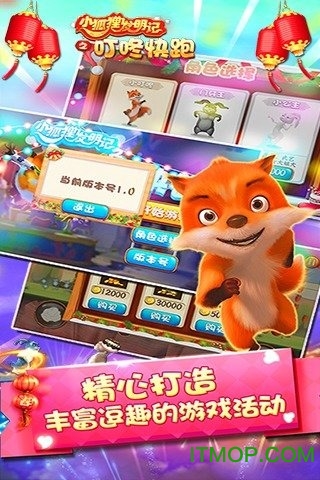 哼哈网络倾情打造的《小狐狸发明记之叮咚快跑》是一款专为新春佳节定制的欢乐跑酷游戏。在这个充满节日氛围的冒险世界里,玩家将与小叮咚、公主兔、门牙王等萌趣角色一起,化身为超级英雄挑战各种极限任务。游戏采用经典的三指操作模式,配合Q萌可爱的角色造型和细腻精致的丛林场景,为玩家带来一场视觉与操作的双重盛宴。特别值得一提的是,游戏还融入了丰富的春节元素,从喜庆的节日装扮到应景的限定活动,处处洋溢着浓浓的年味。这个春节,就让叮咚快跑陪伴您度过一个充满欢声笑语的假期吧!