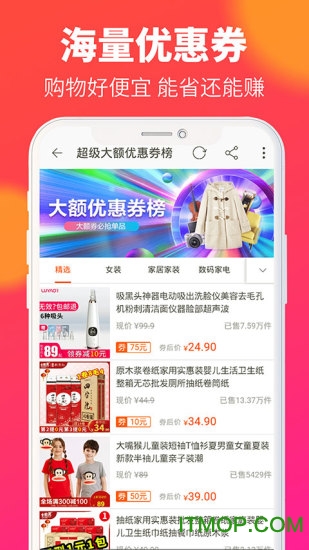 -海量优惠券,购物好便宜,能省还能赚:汇集了各大电商平台的优惠券资源,涵盖服饰、数码、家居等全品类商品,让用户轻松找到心仪商品的优惠信息。