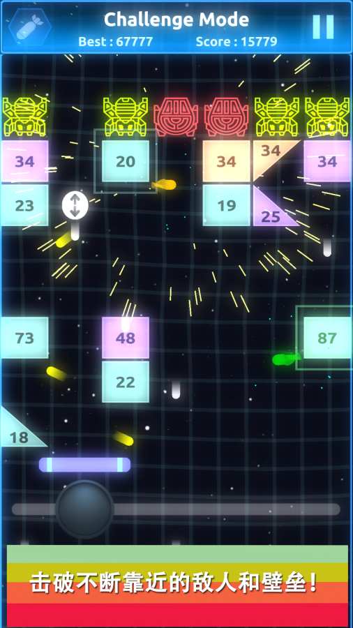 4、面对不断变化的敌人阵容和砖块组合,玩家需要灵活调整战术才能取得胜利。