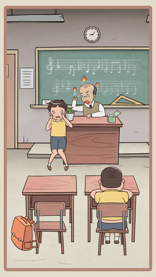 6、在第二场景中,仔细观察铃铛、门、胖同学头部和页面底部的数字,找出四处不同即可获得钥匙。