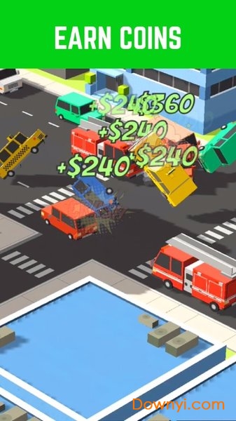 游戏最令人上瘾的莫过于破坏整个城镇的快感,看着街道上的车辆在你的撞击下变成废铁。极简的卡通画面采用了先进的渲染技术,车辆损毁和碰撞特效都极具表现力。丰富的道具系统包括临时加速、磁铁吸金等实用工具,帮助玩家创造更高分数。经济系统设计精妙,升级后的车辆能显著提高收入效率。游戏还隐藏了许多彩蛋和特殊事件,比如遇到警车追逐或运送贵重物品的特殊车辆,为游戏增添更多变数。