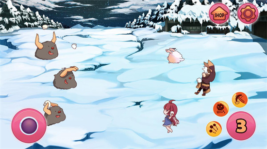 1、游戏采用直观的虚拟摇杆搭配按键操作,让玩家可以轻松控制角色移动和攻击,操作手感流畅自然。2、创新的雪球补充机制设计巧妙,当雪球耗尽时只需点击屏幕任意位置即可快速补充,这种设计既保证了游戏节奏的连贯性,又增加了策略性。3、技能系统与雪球资源紧密关联,每个强力技能都需要消耗相应数量的雪球,玩家需要合理规划资源使用,在关键时刻释放技能扭转战局。