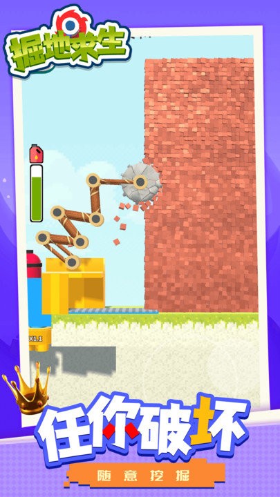 3、像素创意类游戏,开局一台挖掘机,可以随意粉碎墙体。游戏采用独特的像素风格,让破坏和建设的过程充满趣味性。从最初的基础挖掘机开始,您可以自由地拆除各种建筑结构,感受粉碎一切的快感,同时也要注意合理规划拆除顺序。