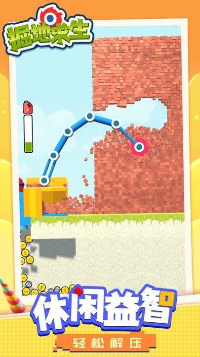 2、通关成功还能解锁全新工具,各种稀有矿物等你来。游戏内设有丰富的收集系统,通过完成任务可以获得金币奖励,用于解锁更强大的挖掘机型号和特殊工具。同时,在挖掘过程中还能发现各种稀有矿物,这些珍贵资源可以用来升级您的装备。