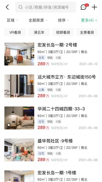 覆盖二手房、新房、租房、商业地产等全品类房源,每日更新上万条真实房源信息