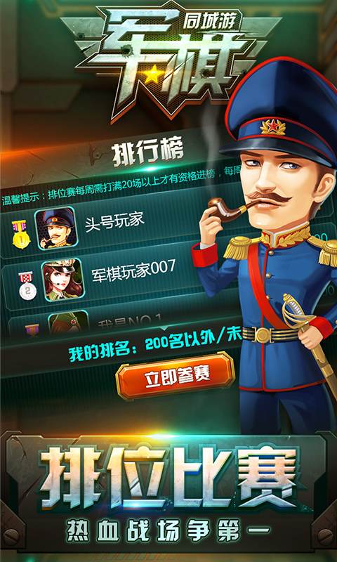 游戏设有专业的排位系统,玩家可以与全国各地的真人玩家实时对战,通过不断胜利提升段位。排位赛汇聚了众多军棋高手,是检验实力的最佳舞台,在这里你可以体验最热血刺激的军棋竞技,向排行榜榜首发起冲击。
