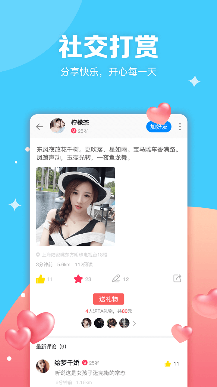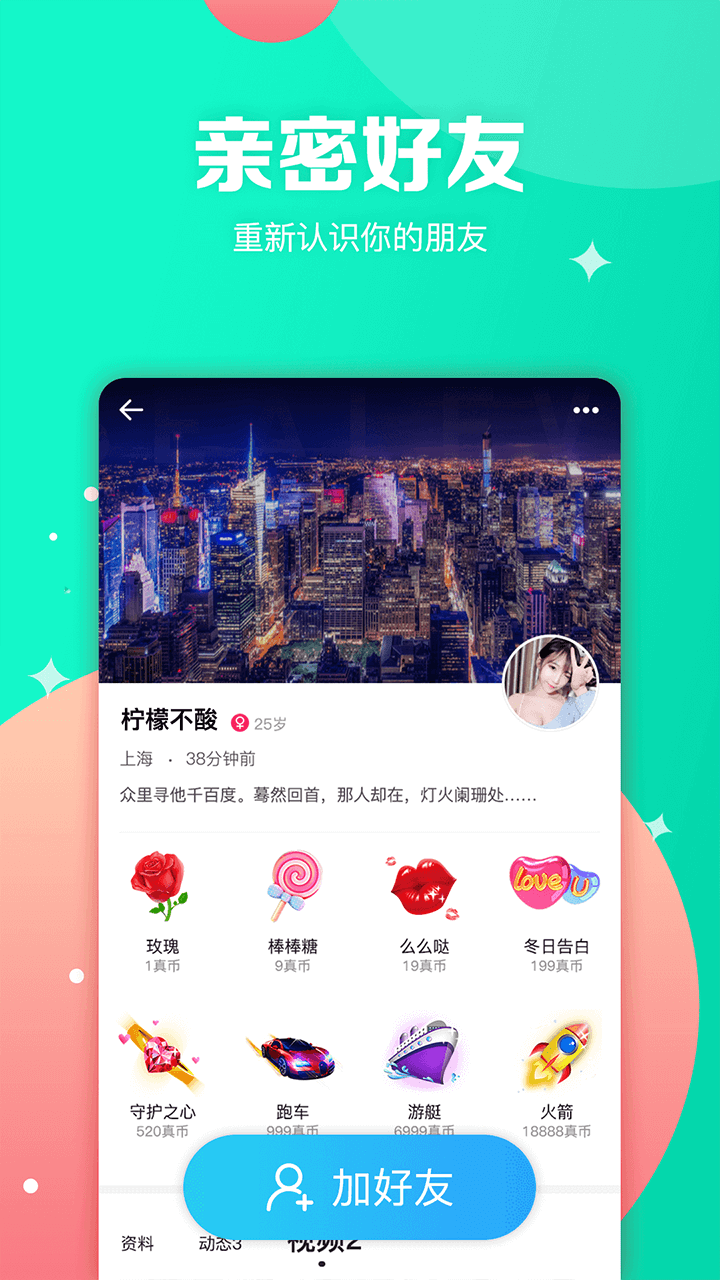 真一真App是一款基于地理位置的移动社交应用,致力于为用户打造全新的线上社交体验。通过精准定位功能,你可以轻松发现周围的小伙伴,开启即时互动与约聊。无论是分享生活点滴、结识新朋友,还是与亲密好友深度交流,真一真都能满足你的社交需求。每天有数百万年轻人在这里分享心情、记录美好瞬间,更有无数人通过平台相遇并成为挚友或伴侣。我们以"让天下没有孤独的人"为愿景,秉持善意、平等与创新的价值观,帮助用户在交流中收获成长与快乐。