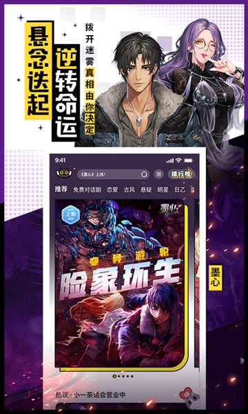 一零零一是一款集互动视觉小说、互动漫画、互动剧为一体的互动阅读APP。知名创作者倾力合作,打造互动阅读精品之作,其中包括育碧、IdeaFactory等知名海外厂商,以及徒子文化、十字星等国内头部内容创作公司。将上架作品的题材丰富,恋爱物语、悬疑解谜、科幻冒险、妖怪幻想等类型应有尽有。平台特别注重内容质量,所有作品都经过严格筛选,确保故事性、艺术性和互动性的完美结合。同时,一零零一还定期举办创作者大赛,发掘更多优秀的新锐作家,为用户带来持续更新的优质内容。