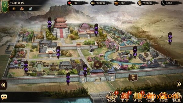 2.作为城池统治者,您每天可以下达政令和军令,从几种命令中选择您想要的一种发布,并在第二天获得成果。在"政厅"您每天可以仲裁案件,主持公道。也可以消耗黄金去寻求人才的帮助,在"军营"您每天可以招募士兵并训练他们。合理分配政令和军令的使用是快速发展的关键。