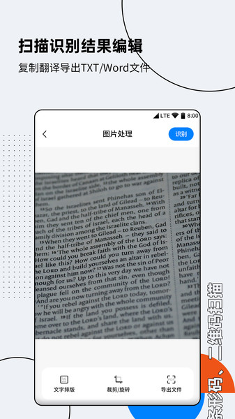 软件支持扫描各类文件、图片、书籍等,快速提取所需文字内容。其强大的OCR技术可识别中文、英语、日语、法语、德语、俄语等十余种语言,满足国际化需求。智能剪裁功能可自动优化文档边界,去除杂乱背景,确保识别效果清晰准确。识别结果自动分段排版,完美还原原文格式。用户可直接将内容转换为PDF或提取文字,还能实现多语言全文互译,无需切换其他翻译应用,一站式解决扫描翻译需求。