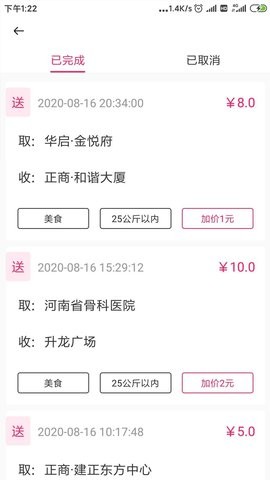 1、在这里,用户可以快速查看自己的订单信息,了解订单的配送费用;每笔订单的详细信息包括配送时间、客户评价等都完整记录,便于骑手复盘总结。