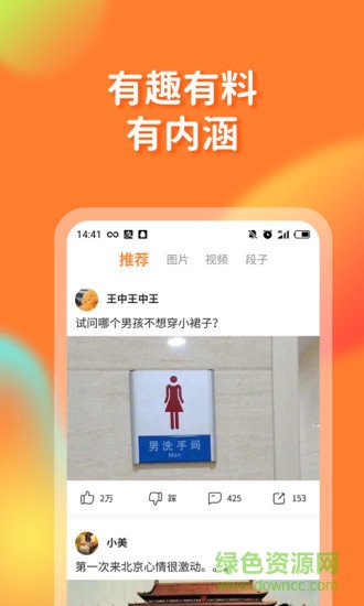 橘子搞笑app是一款专为现代人打造的快乐源泉应用,它能让你在繁忙的生活中找到轻松与欢乐。这款应用汇聚了全网最热门、最搞笑的短视频和图片内容,每日持续更新,保证让你笑不停。无论是上班摸鱼、通勤路上,还是睡前放松,橘子搞笑都能为你带来欢乐时光。在这里,你不仅能欣赏到各种幽默段子,还能参与互动评论,发表自己的见解,甚至上传原创搞笑内容与其他用户分享快乐。平台采用智能推荐算法,总能精准戳中你的笑点,让你的每一天都充满欢声笑语。