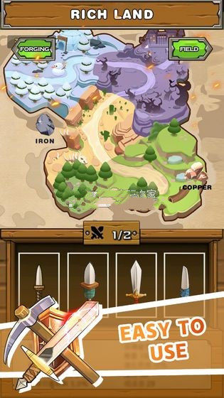 1、作为一款点击类游戏,《刀锋铁匠》提供了简单直观的操作方式,玩家可以通过触摸屏轻松招募、训练和指挥英雄团队。每个英雄都拥有独特的成长路线和技能树,需要玩家精心培养。