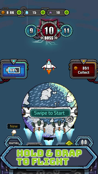 2、拖动你的太空战斗机以避免坠毁拍拍和射击收集硬币升级武器。全新的重力感应操控模式让玩家可以通过倾斜设备来控制战机移动,带来更沉浸式的飞行体验。