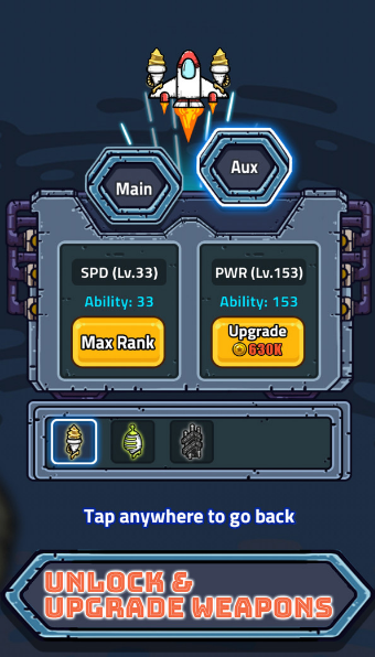 4、玩家将选择他们最喜欢的酷战士进入太空一次激动人心的冒险,游戏提供了8种风格迥异的战机原型,每种战机都拥有独特的武器系统和特殊能力,满足不同玩家的操作偏好。