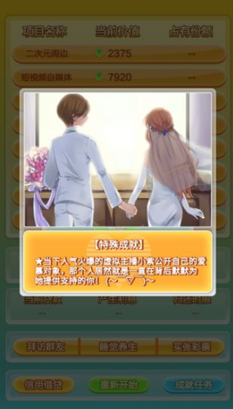 经营模拟类游戏以其独特的策略性和沉浸感深受玩家喜爱,但近年来国内手游市场充斥着大量披着经营外衣的氪金产品,严重偏离了这类游戏的核心乐趣。《群友是富豪》则回归经营模拟的本质,让玩家真正体验从零开始的财富积累之旅。游戏中你将化身投资新贵,通过精准的商业决策在虚拟金融市场中开疆拓土。无论是股票证券还是实体产业,每个投资选择都将影响你的财富版图。更令人兴奋的是,游戏完美还原了真实商战的紧张氛围,上百种投资标的实时波动,需要你像真正的金融大亨那样运筹帷幄。